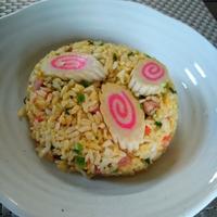 ご飯に卵を絡めてから炒めたので、パラパラに仕上がりました。なるとで彩りが良いです。