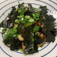 - 4 のりを手で細かくちぎり、3の上に乗せ小ねぎをかけたら完成です。