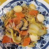 白菜、しいたけ、春雨のみのレシピだったので、ニンジンとうずらの卵を入れてみました!とても簡単にできて美味しかったです!