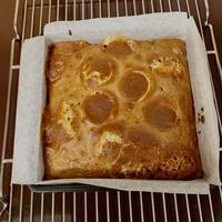 - 5 型に流し込み170℃のオーブンで20分焼きます。中心まで火が通りマシュマロに焼き色がついたら取り出し、粗熱を取り、粉糖をかけ、切り分けて器に盛り付けて完成です。