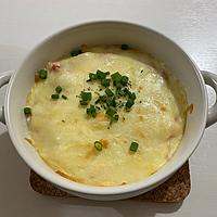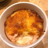 - 3 1を耐熱皿に入れ、2を乗せます。ピザ用チーズを乗せてオーブントースターで15分焼きます。