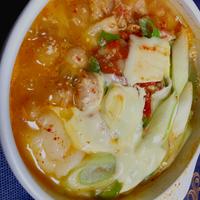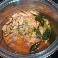 二人分作りました🍲辛いのが苦手なので、粉唐辛子を一味唐辛子ふた振りに変えて、ちょうど良かったです。具沢山のチゲうどん、美味しかったです😋