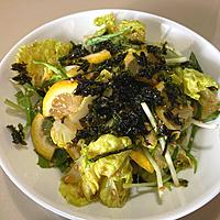 さっぱり美味しい。最後にかけた海苔もいい味出してます。レモンをもっと薄く切れるようになりたい。