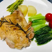 ローズマリーの爽やかな香りが食欲をそそる、シンプルながら本格的な一品です。鶏もも肉の皮はパリパリに焼き上げることがポイントで、中はジューシーな仕上がりに。付け合わせのジャガイモは、鶏の旨味と脂を吸ってホクホクの食感に仕上がります。塩コショウだけのシンプルな味付けですが、ローズマリーの香りで高級レストランのような味わいに。ニンニクを加えても美味しく、作り方も簡単です。