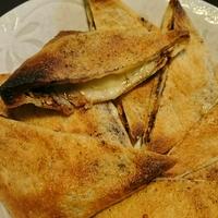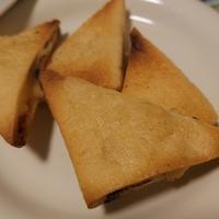 - 2 1を広げて、みそを塗り、ピザ用チーズを挟みます。アルミホイルを敷いた天板にのせて、オーブントースターで表面に焼き色が付くまで5分程焼きます。