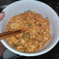 まさにエビチリでした。エビはお高いので鶏肉でお安くエビチリをいただける感じ。卵と片栗粉でトロトロフワフワ。ピリ辛でご飯も進む美味しさ。また作ります。