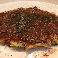 素麺は混ぜ込んで焼きました。モダン焼きと違ってスッと箸で切れるので食べやすい!食感はふんわりしています。揚げ玉を片面に敷き詰めるとカリッとして美味しかったです。