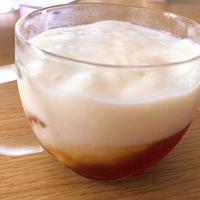 - 3 紅茶を取り出し、砂糖を溶かし粗熱を取ります。60℃まで温度が下がったら1を加えて溶かしグラスに注ぎ入れ冷まします。