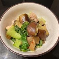 - 6 チンゲン菜がしんなりしてきたら(A)で味付けをし、全体に味がなじみ、鶏もも肉に火が通ったら火から下ろします。