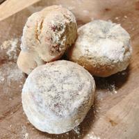 - 3 12等分にし丸めて形を整え、クッキングシートを敷いた天板に並べます。170℃のオーブンで焼き色が付き、生地が膨らむまで15分ほど焼き、粗熱を取ります。