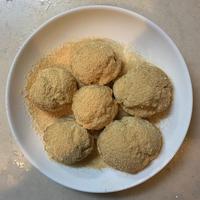 簡単で、子供と一緒に作れました。5歳の子供にはブニブニ部残されましたが2歳の子は2個食べました。周りのきな粉(甘くし過ぎたか)の方が好きみたいです。