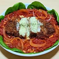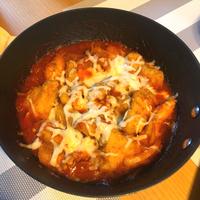 作り置きして冷凍しておいた「チキンカツ」に「トマトソース」。