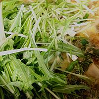 - 7 3を入れて中火でひと煮立ちさせ、水菜がしんなりしたら火から下ろします。器に盛り付けてできあがりです。