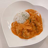 パプリカ風味のチキンのトマトクリームライスのご紹介です。鶏もも肉のコクとカットトマトの酸味、うま味がパプリカパウダー風味のクリームソースによく合い、ごはんにかけるとおいしいですよ。お酒にも合いますのでおもてなしにも喜ばれます。ぜひ、お試しくださいね。