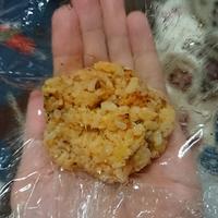 味見用におにぎりに。うまい。。塩は不使用。勝手にラー油もかけて、めちゃくちゃスパイシーに。麻婆豆腐と調味料かぶってるから、そんな味。すき。