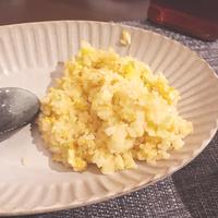 - 3 ニンニクの香りが立って来たら、溶き卵を加えて中火のまま炒めます。