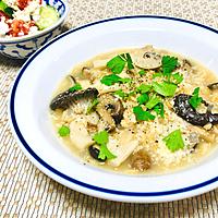 エリンギ、ヒラタケ、マッシュルーム使用。オートミールで作っています。微塵切り玉ねぎと白ワインを追加、最後にトリュフオイル垂らしてます。