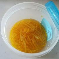 - 2 皮に付いた実や薄皮を取り除き薄切りにします。