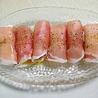 - 2 生ハムは半分に切ります。