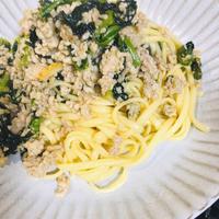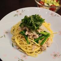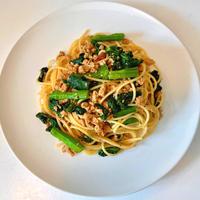 菜の花とひき肉の塩ガーリックパスタ レシピ・作り方
