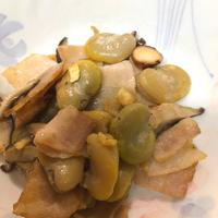 しいたけを代わりに入れました。そら豆がホクホクして美味しかったです。薄皮をむくのは時間がかかりましたが。