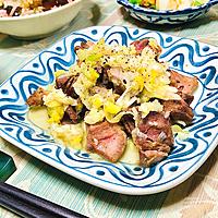 コリコリとした食感が楽しい砂肝を炒めて、たっぷりの長ねぎとレモン汁が効いたねぎ塩ダレに絡めました。思わず、パクパクとお箸がすすんでしまう一品です。おかずとしても、お酒のおつまみにもオススメです。ぜひ、お試し下さい。