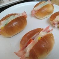 バターロールにベーコンとスライスチーズ、ミックスベジタブルを挟んでトースターへ。サンドイッチになっていますが、このレシピにインスパイアされました。