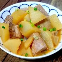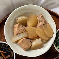 切って煮るだけの簡単レシピですが大根によく味が染み込んでいて美味しかったです。マグロは塩を振って水気を拭いてから霜降りをして、煮込む際に長ネギの青いところも加えています。きび砂糖使用。
