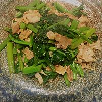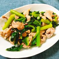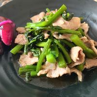 少し粘り気の出るつるむらさきを豚バラ肉と一緒に炒め合わせました。 味つけもとてもシンプルですが、簡単に作れて美味しい一品です。 ささっと作れてしまいますので、食卓に一品足りない際にもとても重宝ですよ。