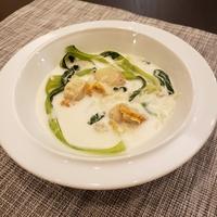 干し貝柱とチンゲン菜のクリーム煮はいかがでしょうか。旨味たっぷりの干し貝柱を戻し汁とともに使用しました。チンゲン菜のシャキシャキとした食感と生姜の爽やかな香りが食欲が増します。ごはんと一緒に、お酒のおつまみにぜひ、お試し下さい。