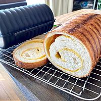 チーズはしっかり生地に押し付け、きつめに巻き込んだつもりですがカットしてみると、どうしても空洞が出来てしまいます‥😣