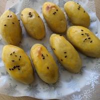 またまた作ってしまいました。マッシャーが無いのでフォークで潰しました。卵黄はスプーンの裏で塗りました。とってもおいしいです!安納芋で作ったのですが、スジが多く作りづらかったです(笑)