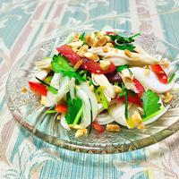 「鶏肉と新玉ねぎのタイ風サラダ」の作り方を簡単で分かりやすいレシピ動画で紹介しています。