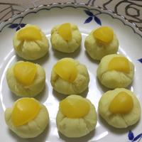 おせちで余った栗の甘露煮を混ぜて作りました。くちなし無かったのですがそれなりにできました。美味しかったです。