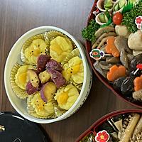 おせちにかかせない栗きんとんを電子レンジで簡単に仕上げました。栗の甘露煮シロップを使い、さつまいもの素朴な甘みを生かしました。形もかわいらしく、茶巾に絞ってます。ぜひお試しくださいね。