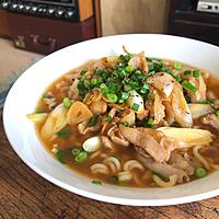 醤油の生麵で作りました。店で食べた豚肉ザーサイセロリー麺が美味しくて家でも作ってます。全部細切りで、ネギも入れてます。