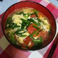 たまごふわふわ ニラとトマトの醤油ラーメン レシピ・作り方