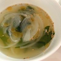 ごま油香る玉ねぎとわかめのシンプルな中華スープです。わかめの塩味、玉ねぎ本来の甘みを楽しめる一品です。白いりごまを入れることで、ごまの香りがプラスされ、より美味しくなります。簡単ですので、ぜひお試し下さい。