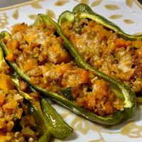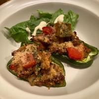 かぼちゃをメインに、野菜とひき肉を炒め、ピーマンの肉詰めならぬ、ボロネーゼ詰めにしました。冷蔵庫の残り野菜を使って色々アレンジしてみるのもいいですね。ピーマンの肉詰めのアレンジメニューとして、この機会にぜひ作ってみてくださいね。