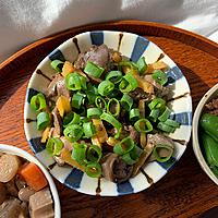 ネギがなかったので、野菜を添えました。今まで甘辛煮を作っていましたが、黒酢も甘すぎずで美味しいです。なかなか黒酢が消費できていなかったので助かりました。また作ります。