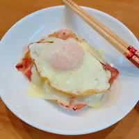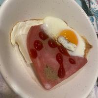 ベーコンエッグの上にケチャップと胡椒を乗せたおかげか美味しくできました。