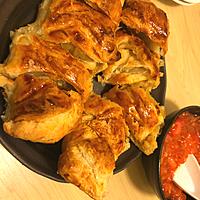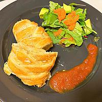 冷凍パイシートを使った簡単なのに見た目も豪華な一品です。タラやサーモン、鯛など好みの魚を使え、じゃがいもとの相性も抜群です。パリッと香ばしい生地の中から、ホクホクのポテトと魚の旨みがジュワッと溢れ出します。付け合わせのトマトソースがスパイシーでアクセントになり、素材の味を引き立てます。焼き加減に気を付けて、フィリングはしっかり冷ましてから包むのがポイントですよ。