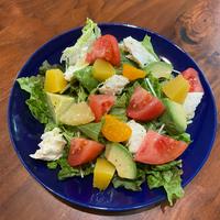 リーフレタスにアボカド1/2個+ミカンと貰い物のタンカンを載せて。ドレッシングはレモン汁の代わりに貰い物のシークヮーサーを入れました。少し塩味が足りなかったけど、さっぱりして美味しかったです。