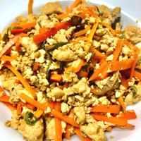 豆腐はそのまま炒めても大丈夫ですが、水切りを軽くすることで、炒め時間が短縮できます。豆腐の水切りは電子レンジでも出来ます。豆腐を2cm程度にスライスしてキッチンペーパーに包み、皿にのせたらラップをしないで600Wの電子レンジで2分ほど加熱してください。野菜はお好みの野菜を入れてアレンジしても美味しいです。こちらのレシピは、はちみつを使用しております。1歳未満(乳幼児)のお子様はお召し上がりにならないようご注意ください。