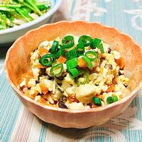 ごま油の香ばしい香りが食欲をそそり、木綿豆腐の優しい味わいが特徴的な一品です。基本の具材は木綿豆腐、人参、干し椎茸ですが、エビや枝豆、玉ねぎなどをプラスすると、より食べ応えのある主菜に。だし汁を加えてコクを出すのがポイントです。レンジで豆腐の水切りをすれば、手早く調理できます。溶き卵を最後に加えることで、まろやかな味わいに仕上がります。
