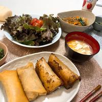 自宅で掘った筍で作りました~。椎茸と春雨を足し、具だくさんの春巻きになりました。更に拘りは、油で揚げずオーブンで焼いた我が家特製のパリパリ春巻きです。😋🍴💕
