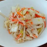 - 1 キャベツはざく切り、にんじんは細切り、玉ねぎは薄切りにします。