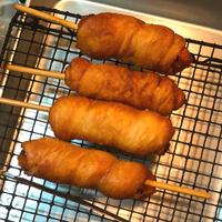 みんなだいすきぐるぐるアメリカンドッグ風のご紹介です。ソーセージに、外はカリッと中はふわっとしたパン生地を巻きつけ、カリッと揚げました。強力粉とイーストが入った生地は、もちもちふわふわとした食感に仕上がりますよ。朝食やおやつにぴったりなので、ぜひお試しくださいね。