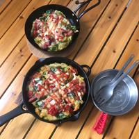 - 5 両面を焼き、トマトや豚肉が乗っている側にとろけるチーズを乗せ、2分ほど蓋をします。