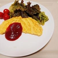 - 6 添え野菜を添え、ケチャップをかけて完成です。